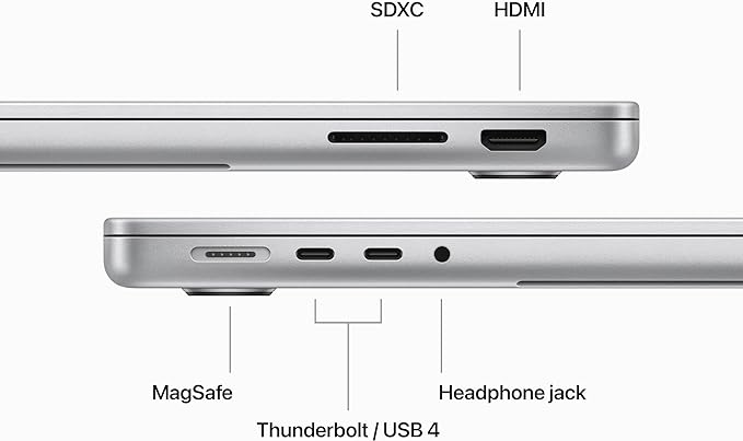 - CONNECT IT ALL — This MacBook Pro features a MagSafe charging port, two Thunderbolt / USB 4 ports, an SDXC card slot, an HDMI port, and a headphone jack. Enjoy fast wireless connectivity with Wi-Fi 6E and Bluetooth 5.3. Supports one external display. (Wi‑Fi 6E available in countries and regions where supported.)